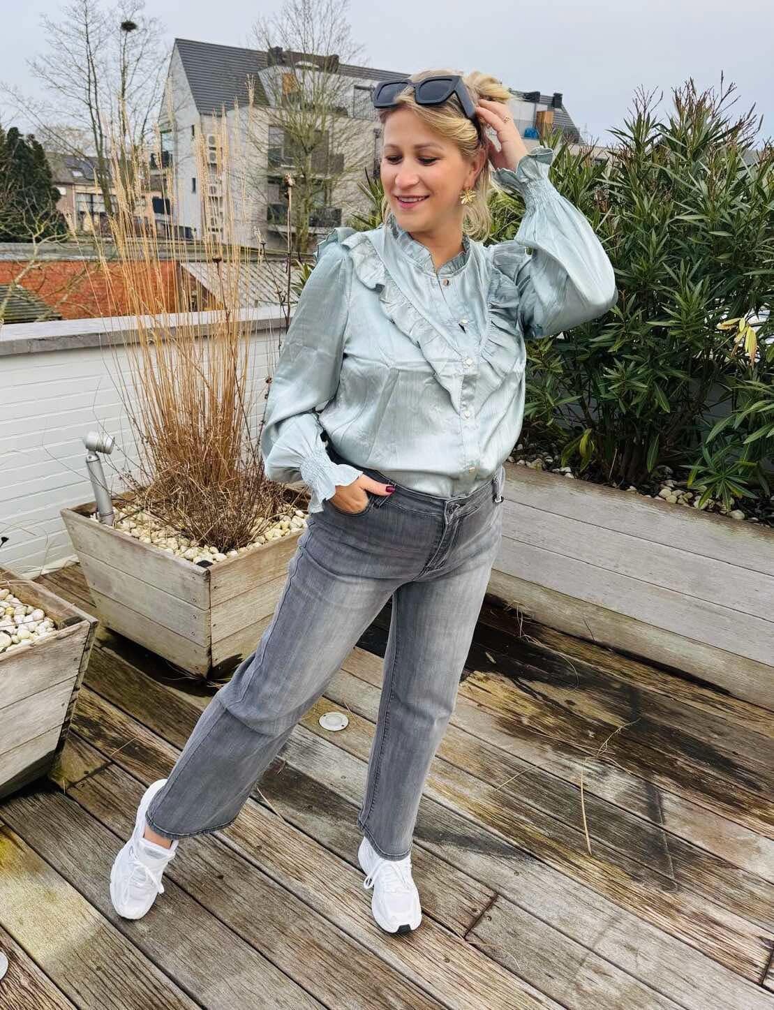 Onze prachtige jeans met veel stretch nu in een wide leg en een mooie grijze kleur!