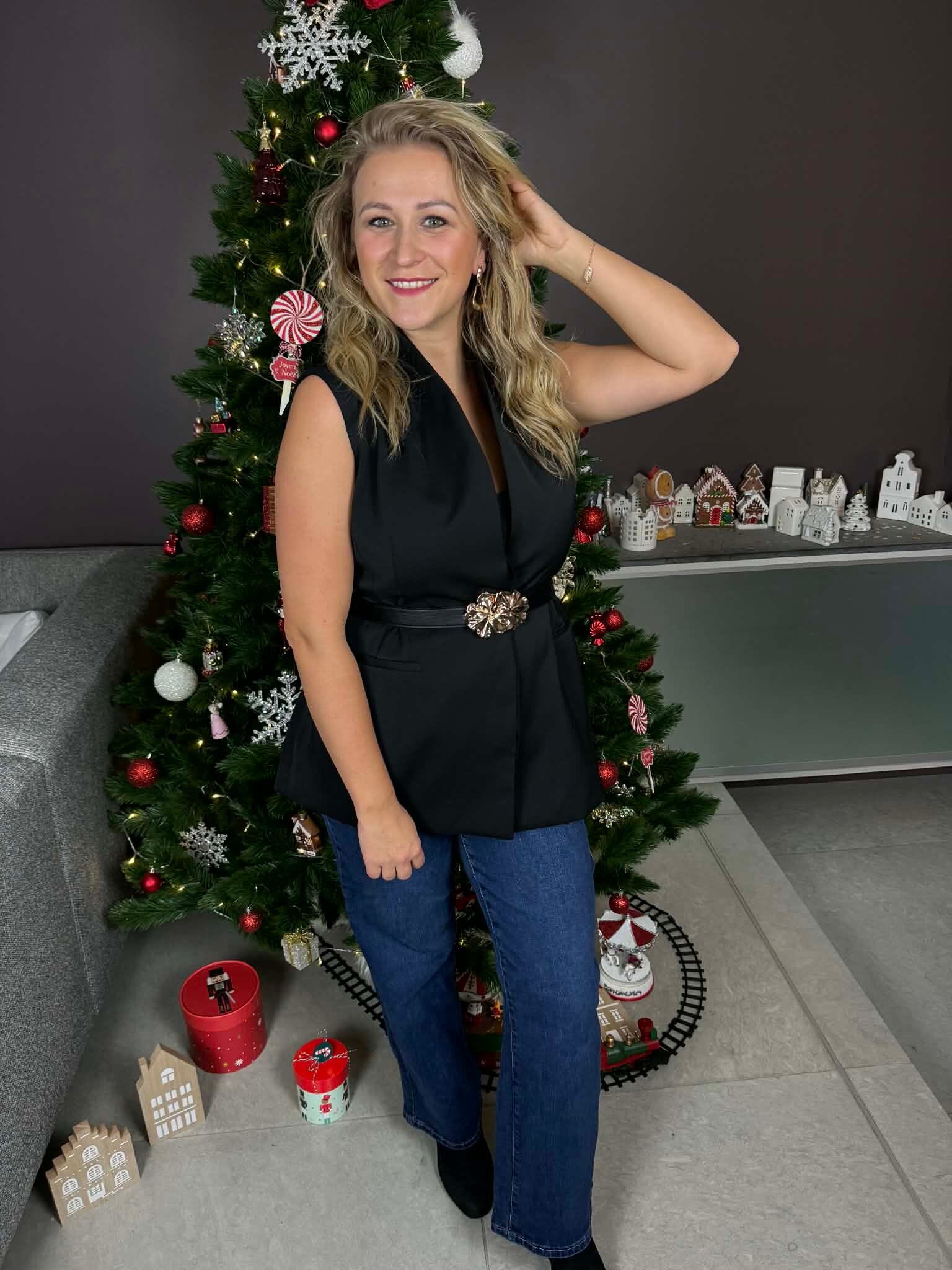 Prachtige kostuum vest top, riempje is verstelbaar.